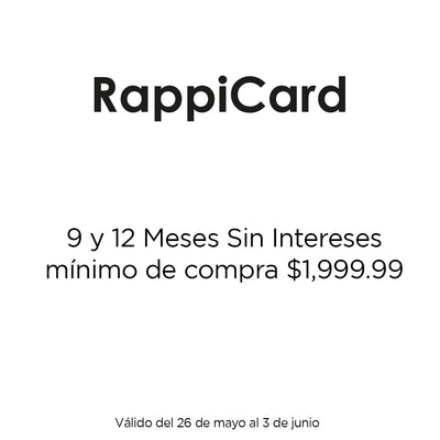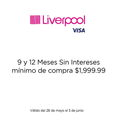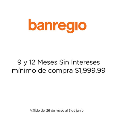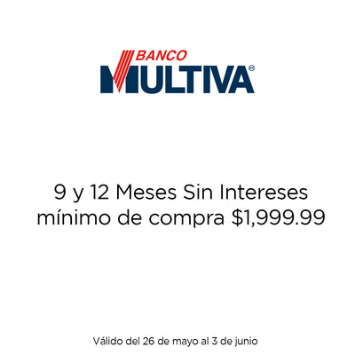 12 meses sin intereses son válidos con un mínimo de compra de $1,999.99. Vigencia del 26 de mayo al 03 de junio.