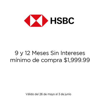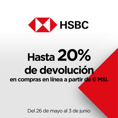 • Clientes No Premier y/o Sin Nomina HSBC: Aplica una devolución del 10% en todas las compras a partir de 6MSI Consulta términos y condiciones completos de la promoción directamente en www.hsbc.com.mx/hotsale. La fecha efectiva que se considerará para las compras elegibles a a devolución será aquella en la que el comercio realice el cargo a la Tarjeta de Crédito HSBC (Algunos comercios procesan el cargo días posteriores a la realización de la compra), por lo que en caso de que la compra sea reflejada fuera de la vigencia de la promoción, la devolución del porcentaje de compras que corresponda podría no ser aplicada. Solo aplica en compras realizadas en Moneda Nacional. Consulta www.hsbc.com.mx/hotsale.