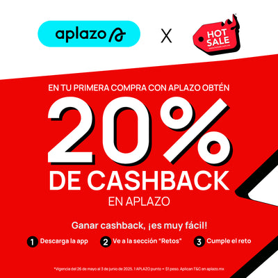 20% de cashback en aplazo aplican Términos y Condiciones en aplazo.mx. Vigencia del 26 de mayo al 3 de junio del 2025.