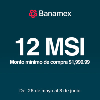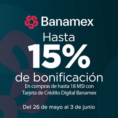 Hasta 15% de bonificación en compras hasta 18 MSI con Tarjeta de Crédito Digital Banamex. Vigencia del 26 de mayo al 03 de junio del 2025.