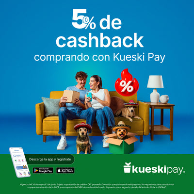 5% de Cashback de Kueski aplica en próximas compras. El monto máximo es de $200 MXN. No hay un límite en la cantidad de compras, se podrá acumular todo el cashback deseado. No es necesario un cupón para acumular cashback. Para utilizar el cashback en futuras compras, el cliente deberá activar el cupón desde su sesión. El cashback estará disponible por 3 meses. Una vez activado el cupón tendrá una vigencia de un mes. El cashback podrá aplicarse en cualquier comercio que acepte Kueski Pay. Vigencia del 26 de mayo al 3 de junio del 2025.