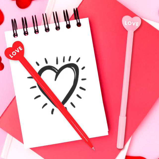 Bolígrafos con Diseño de Corazón "Love", Lila y Azul
