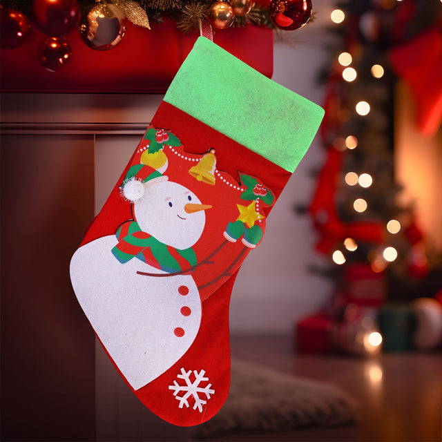 Bota Navideña color Rojo con Diseño de Muñeco de Nieve