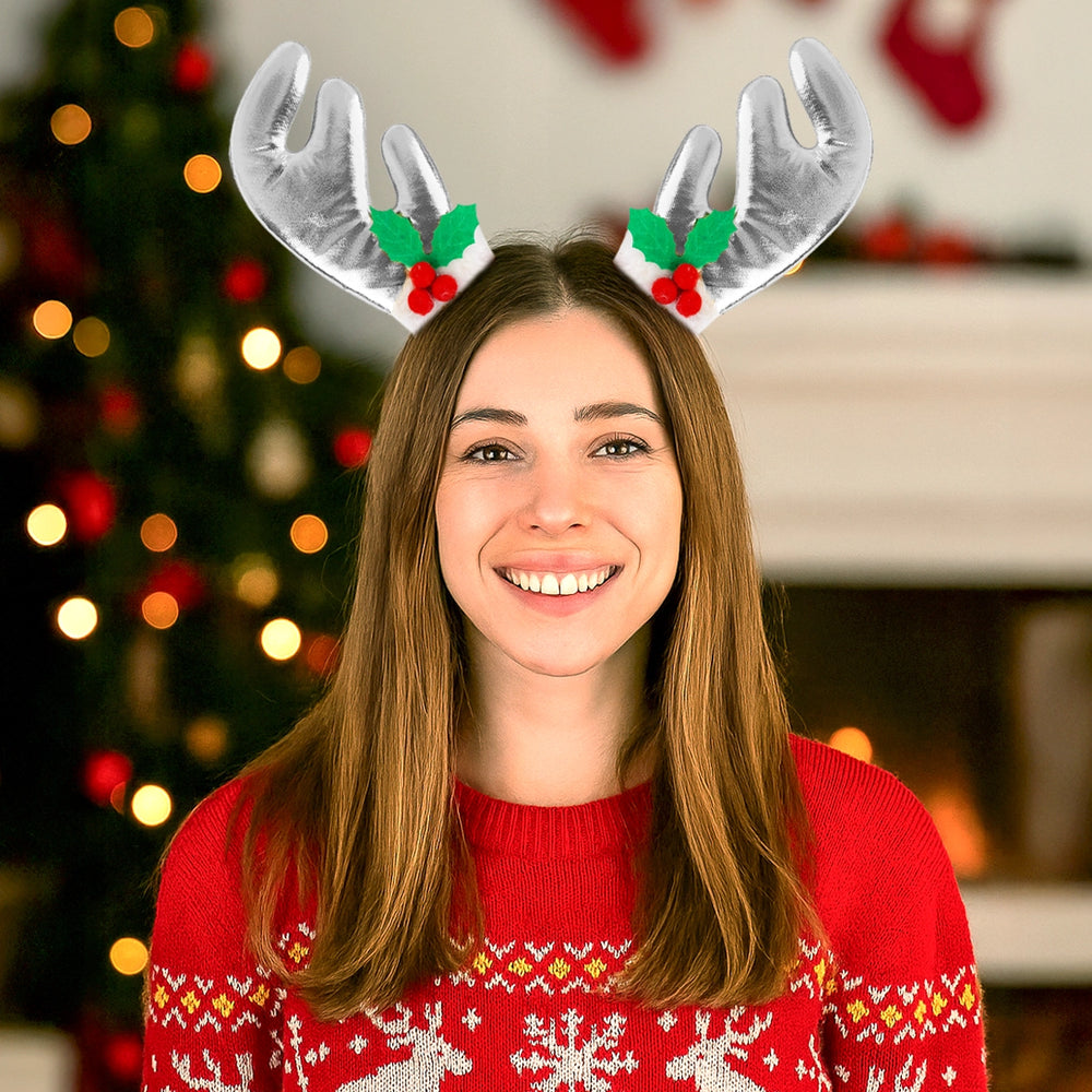 Broches de Cabello Navideños, Cuernos Reno, Color Plata