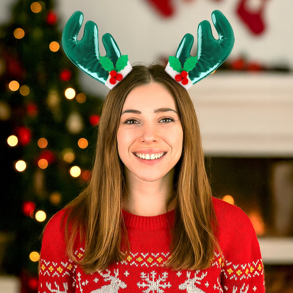 Broches de Cabello Navideños, Cuernos Reno, Color Verde