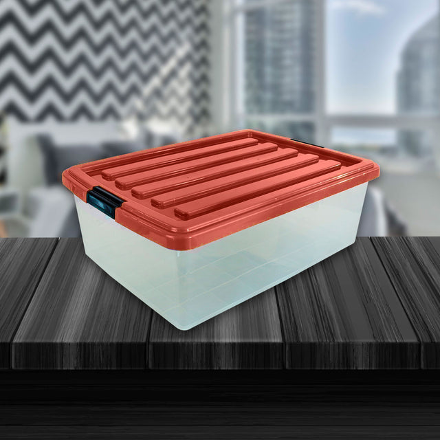 Caja de plástico con tapa, puede guardar hasta 32 litros. Ideal para organizar tu hogar.