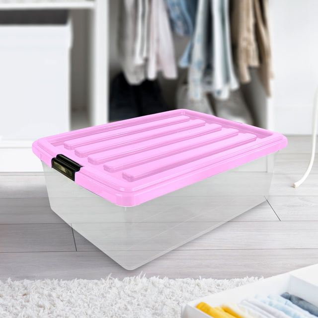 Caja de plástico con tapa, puede guardar hasta 32 litros. Ideal para organizar tu hogar.