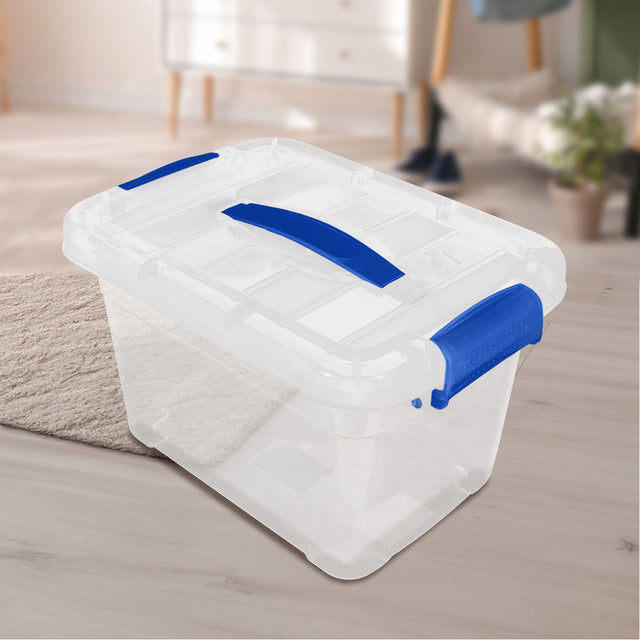 - Caja de plástico con grapas de cierre a presión cuentan con una tapa ergonómica, hermética y resistente que facilita la movilidad de los productos almacenados.