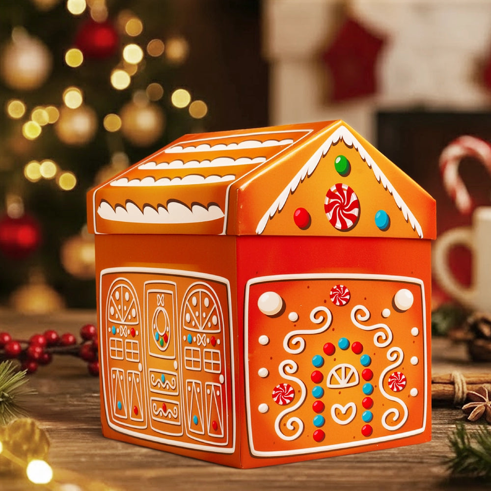 - Caja decorativa con diseño de casita navideña, ideal para regalos o dulces