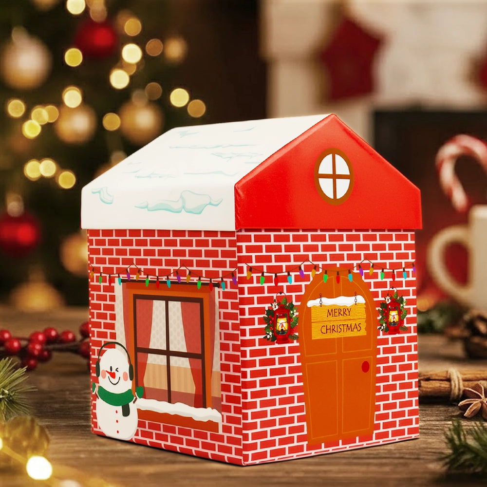 - Caja decorativa con diseño de casita navideña, ideal para regalos o dulces