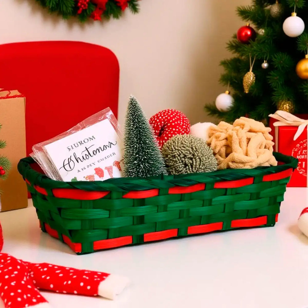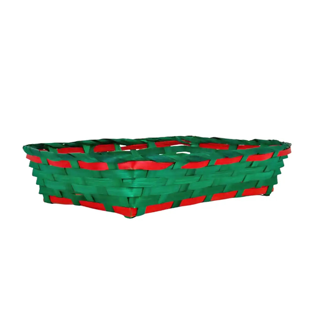 Canasta de Bamboo Navideña, Color Verde y Rojo, 20x30 cm