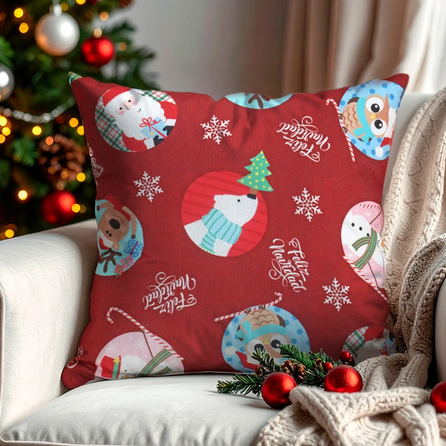 Cojín Cuadrado Navideño, Color Vino está agotado y se enviará tan pronto como vuelva a estar disponible.