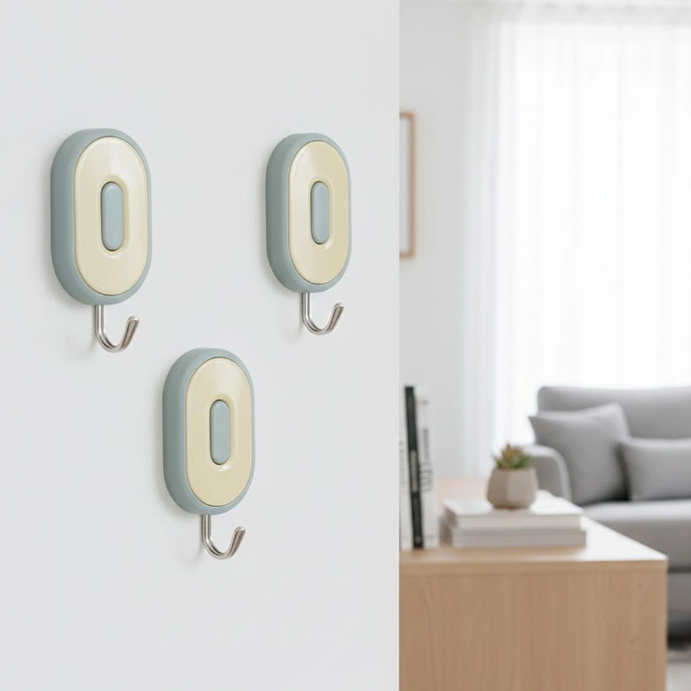 Colgadores Metálicos Ovalados Autoadhesivos, Color Verde, 3 pzas