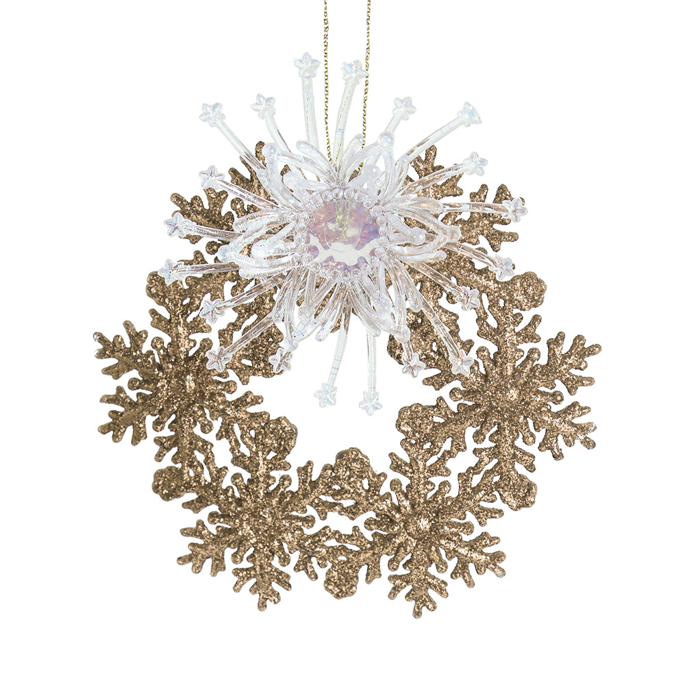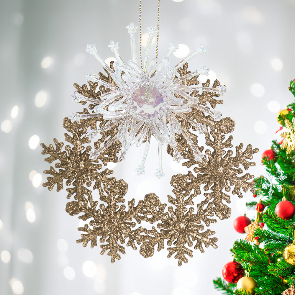 Copo de Nieve con Glitter y Adorno Plástico, Color Dorado