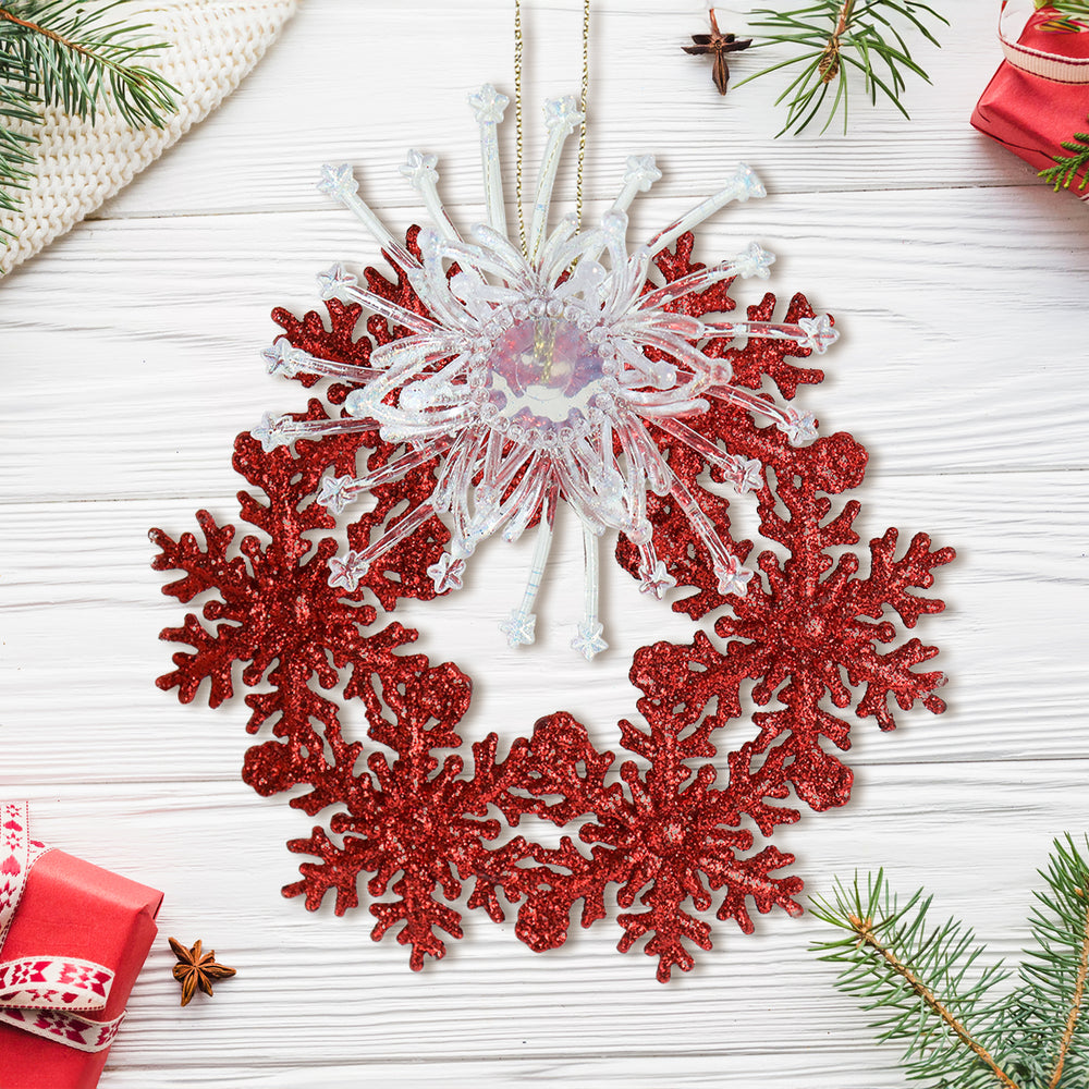 Copo de Nieve con Glitter y Adorno Plástico, Color Rojo