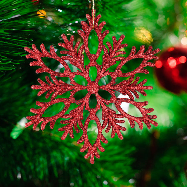 Copo de Nieve, Ornamento Navideño con Glitter, Color Rojo