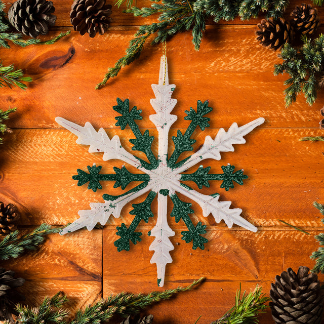 Copo de Nieve, Plástico y Glitter, Color Verde, 16 cm