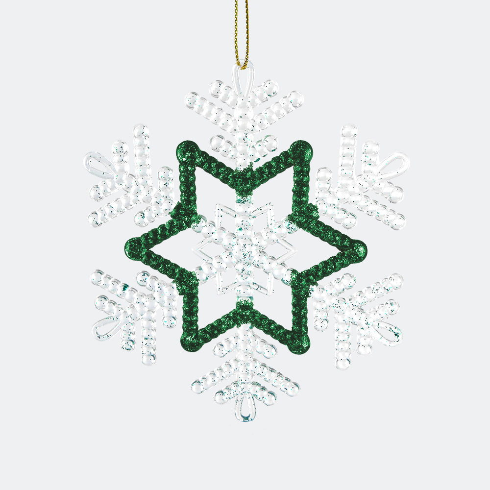 Copo de Nieve, Plástico y Glitter, Color Verde