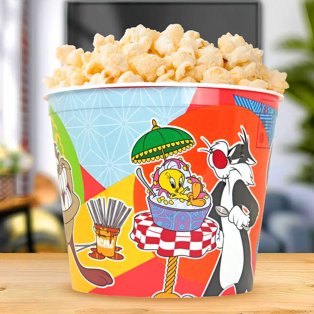 Haz de cada película una experiencia completa con este contenedor de palomitas. Su diseño es perfecto para disfrutar de tus snacks favoritos en casa, fiestas o reuniones.