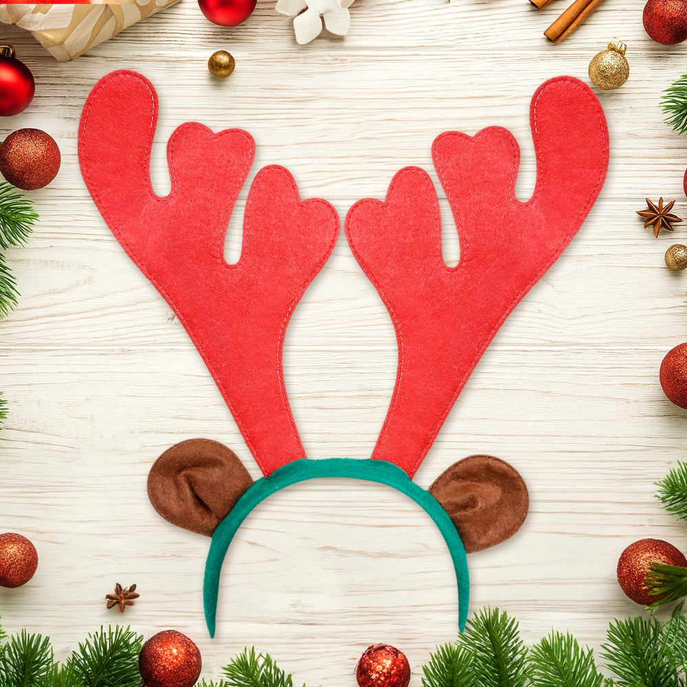 Diadema Navideña, Cuernos de Reno, Color Rojo