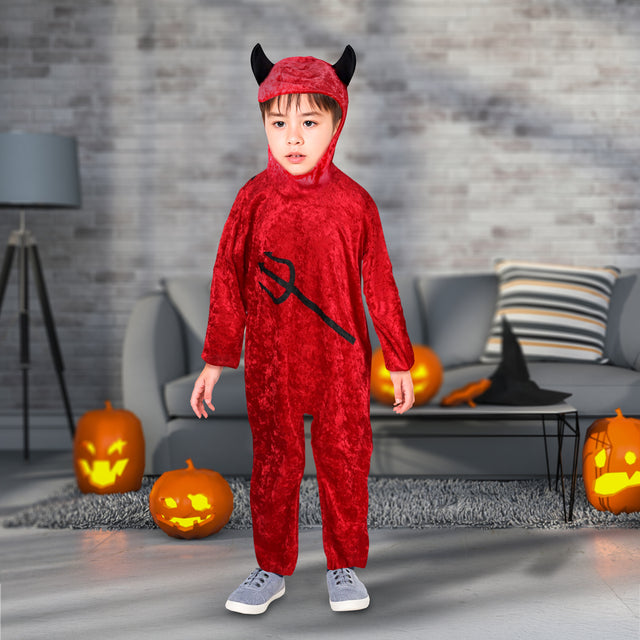 - Este disfraz está hecho de materiales suaves y cómodos, garantizando que los más pequeños disfruten del máximo confort mientras se divierten. ¡Convierte a tu pequeño en el diablillo más travieso de la noche!