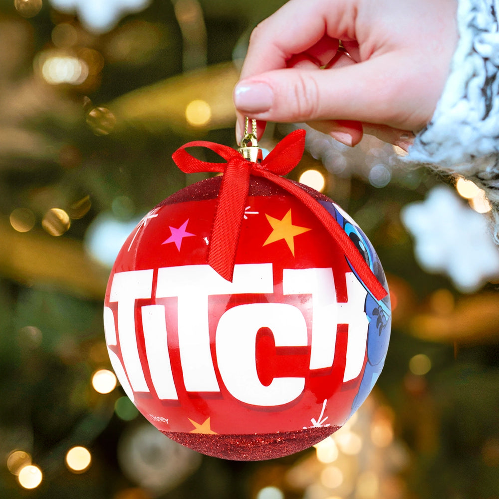 Esfera Navideña con Moño, Stitch, Color Rojo