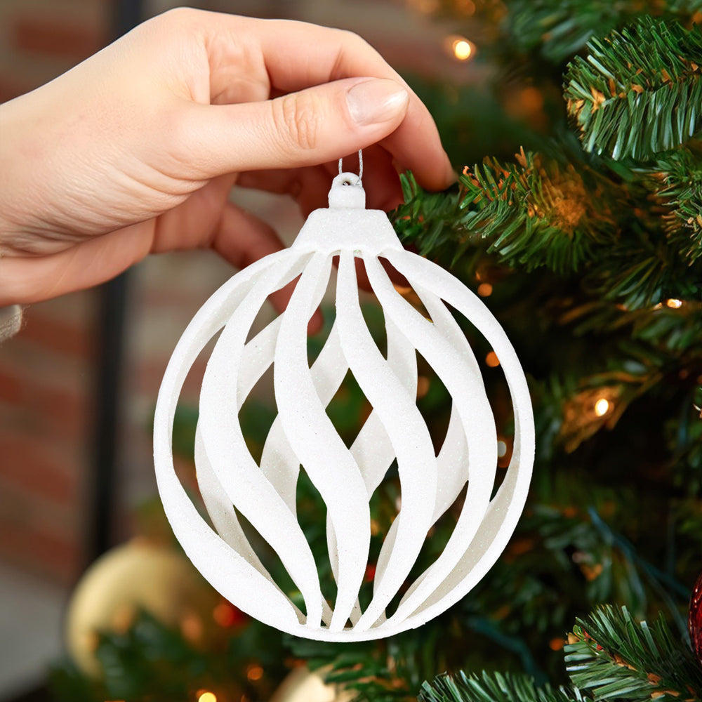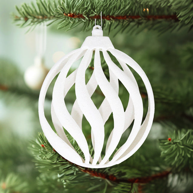 Esfera Navideña, Glitter, Color Blanco, 17 cm
