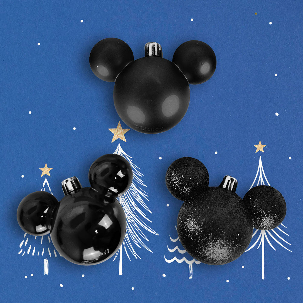 Esferas Navideñas color Negro de Mickey Mouse, 3 pzas.