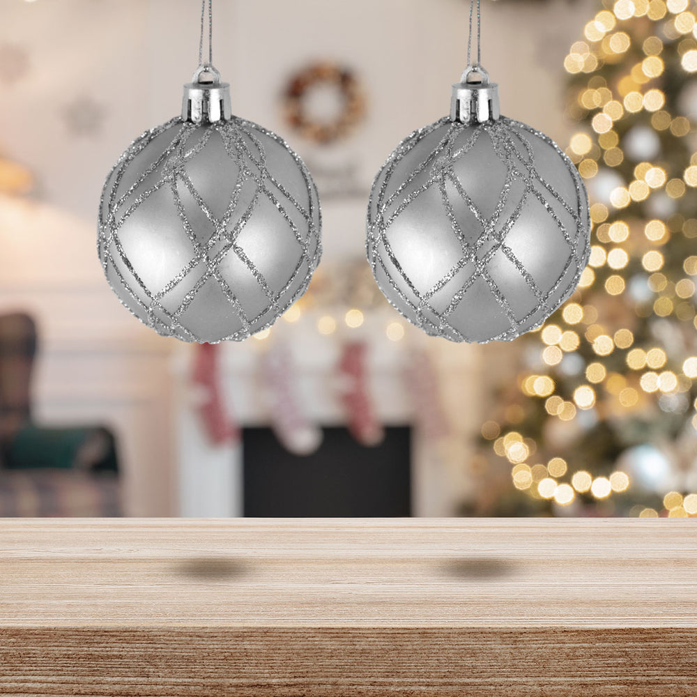 Esferas Navideñas con Glitter, Color Plateado, 2 pzas
