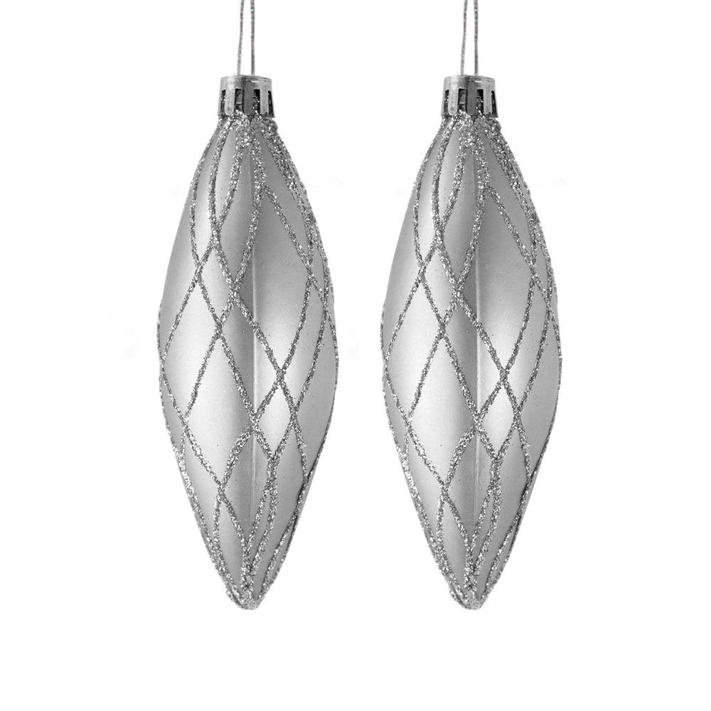 Esferas Navideñas con Glitter, Forma Alargada, Color Plateado, 2 pzas