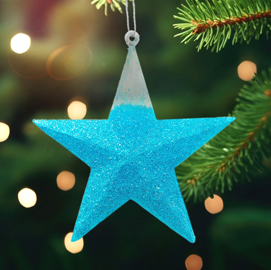 Estrella, Decoración Colgante, Glitter, Color Azul, 2 pzas