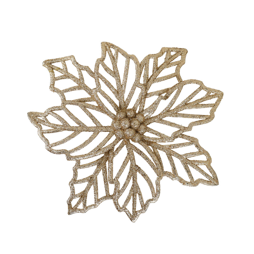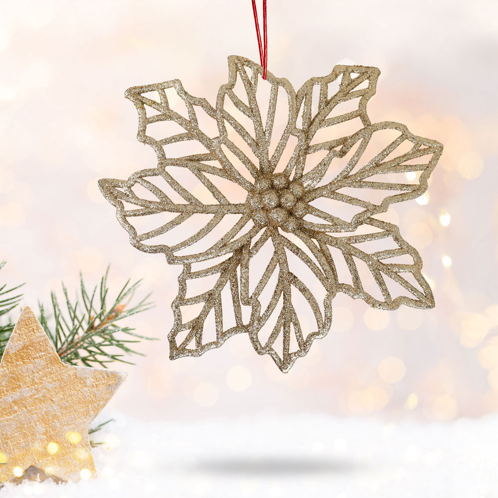 Flor Ornamento Navideño, Color Dorado, 23 cm