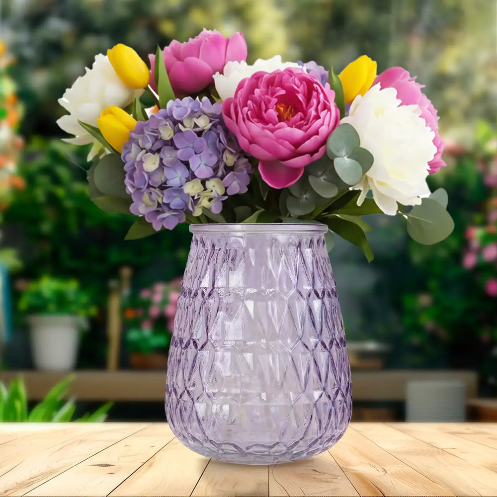 Florero de Cristal, Color Morado, 15x12 cm está agotado y se enviará tan pronto como vuelva a estar disponible.