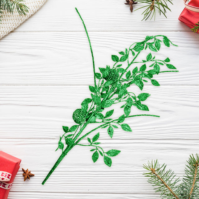 Follaje, Rama Decorativa, Glitter, Color Verde