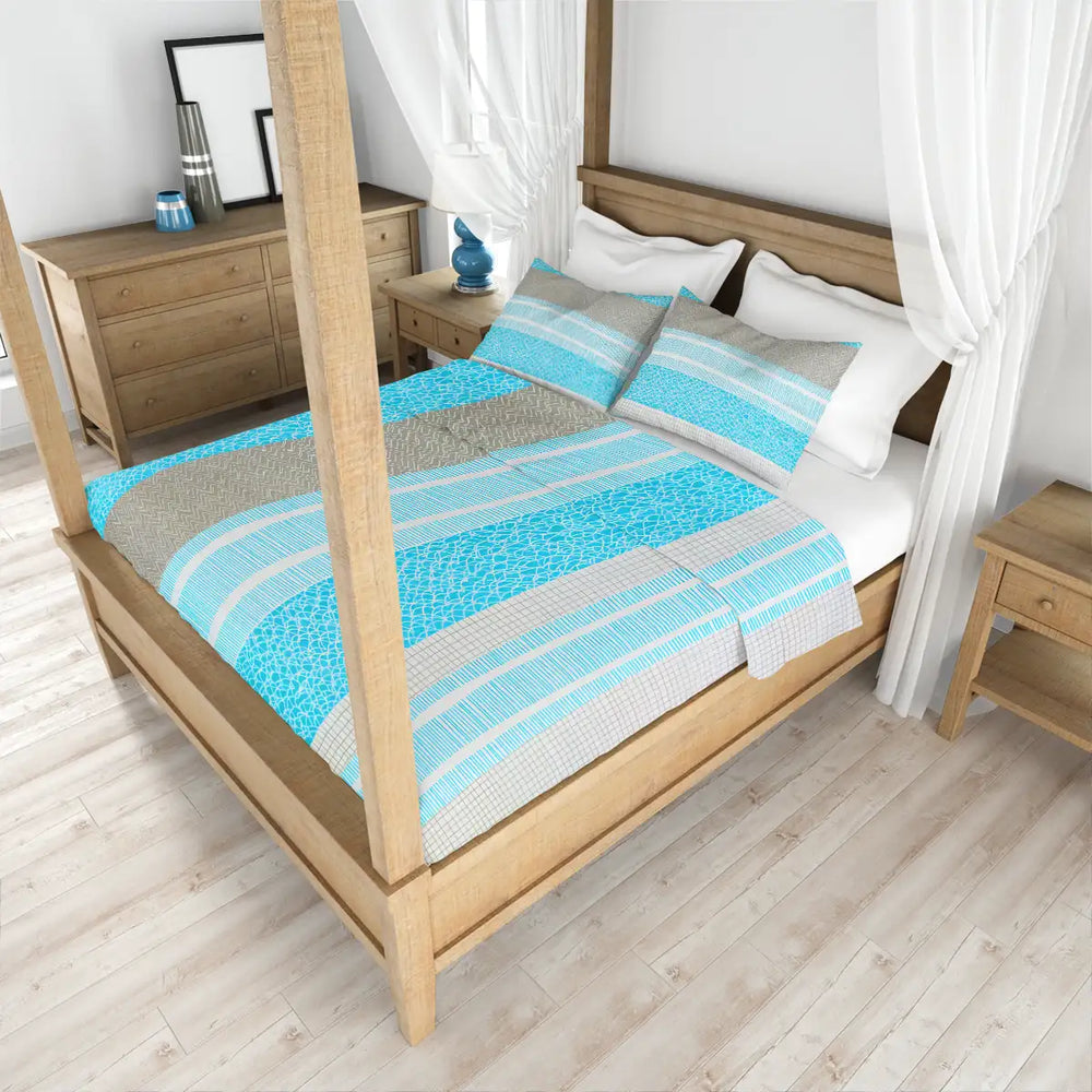 Juego de Sábanas Matrimoniales, Color Azul y Gris