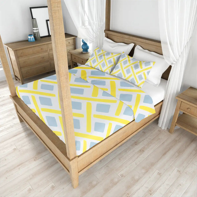 Juego de Sábanas Matrimoniales, Diseño Cuadros, Color Amarillo