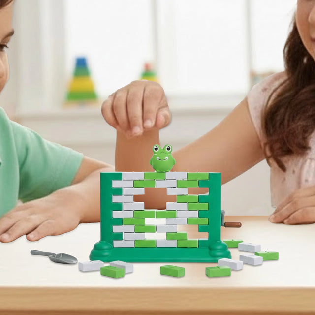 - Dinámica de apilar bloques y retirar piezas sin que caiga la rana.