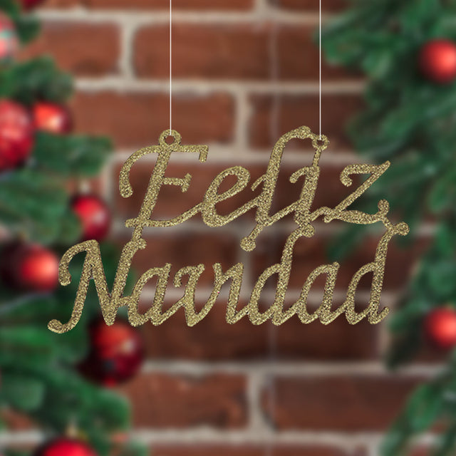 Letrero Feliz Navidad color Oro con Glitter