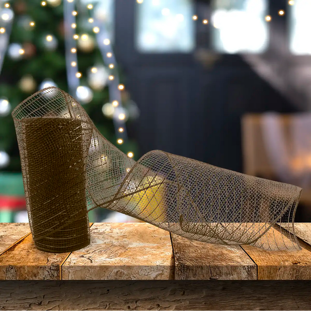 Listón Navideño Mesh, Color Café, 3 m