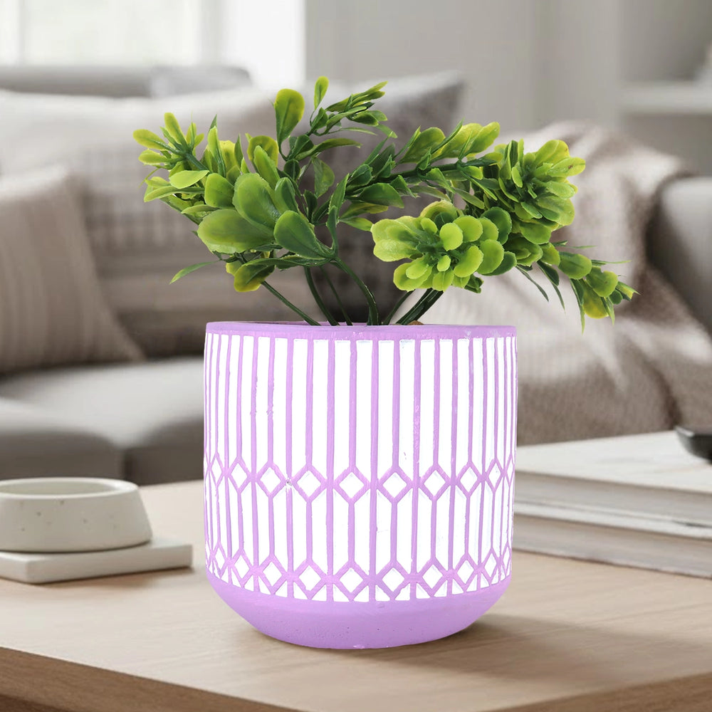Maceta con Planta Artificial, Diseño Azulejo, Color Lila