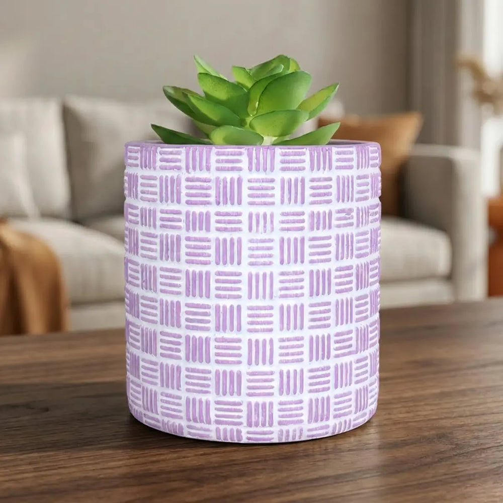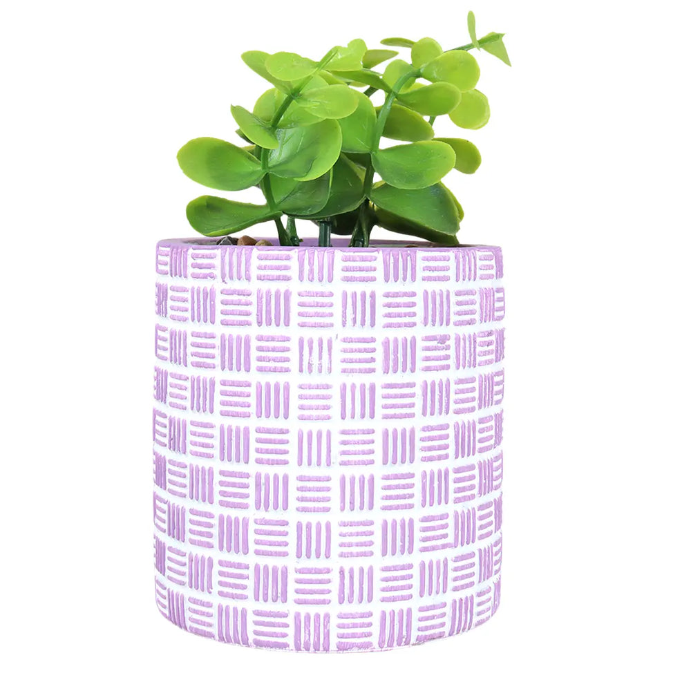 Maceta con Planta Artificial, Diseño Cilindro, Color Morado