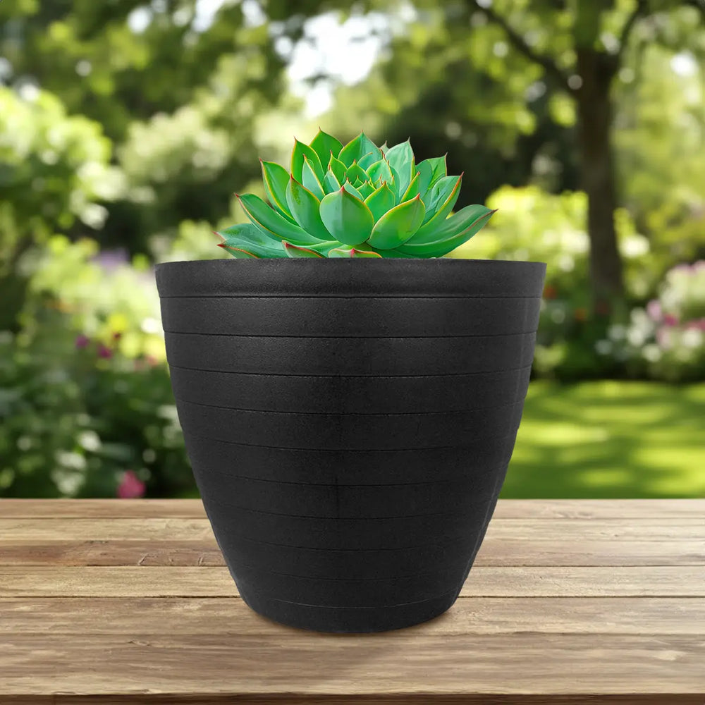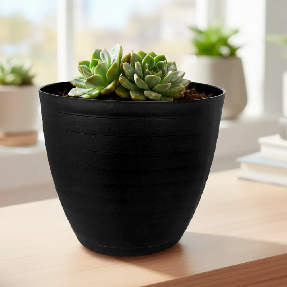 Maceta de Plástico, Textura Líneas, Color Negro