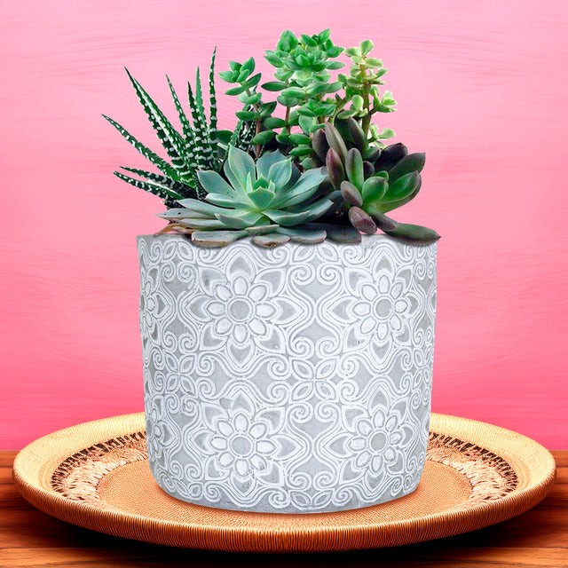 - Maceta de yeso con acabados mate ideal para decoración de jardín interior y exterior.
