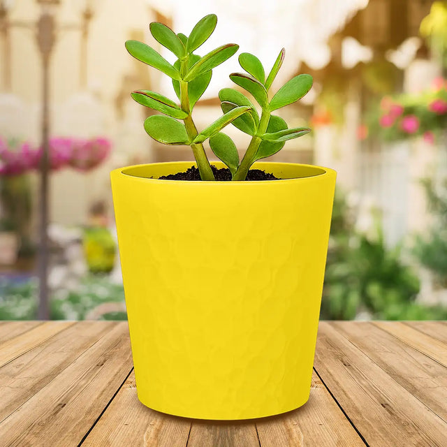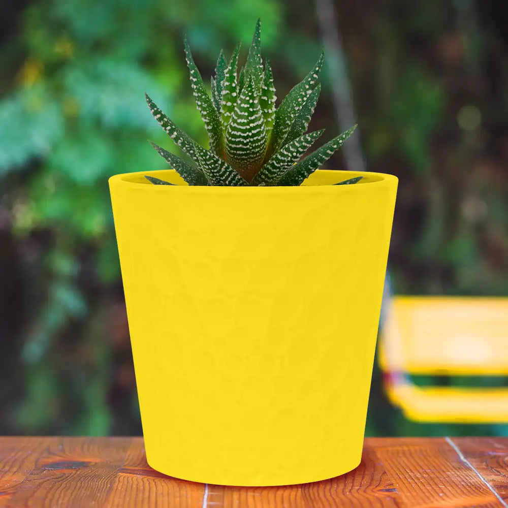 Maceta Textura Círculos, Color Amarilla, 13x12 cm