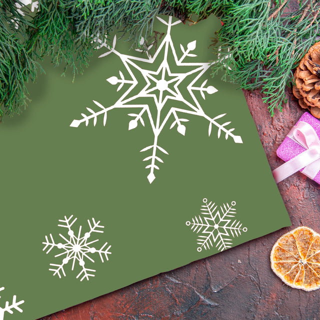 Mantel Navideño, Estampado de Copos de Nieve, Color Verde