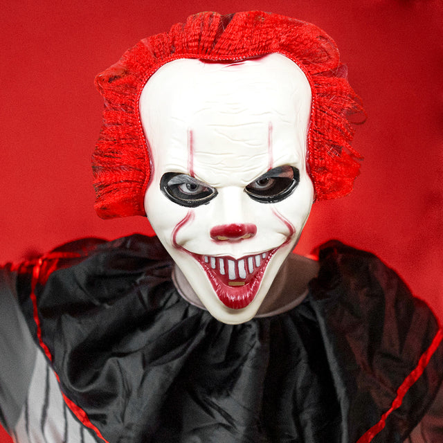 - Perfecta para completar tu disfraz de Halloween o para añadir un toque espeluznante a cualquier evento temático, esta máscara captura la esencia aterradora del payaso más famoso del cine.