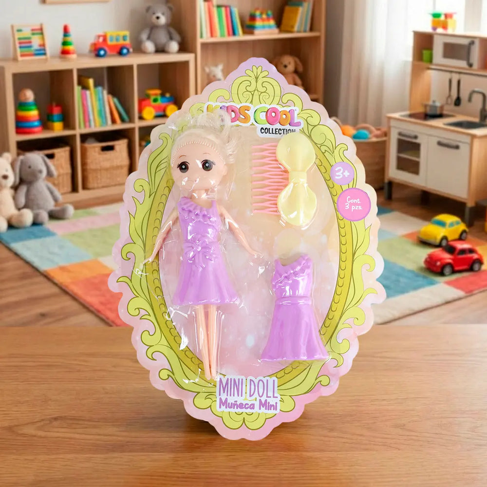 Mini Muñeca con Vestido y Accesorios, Color Lila