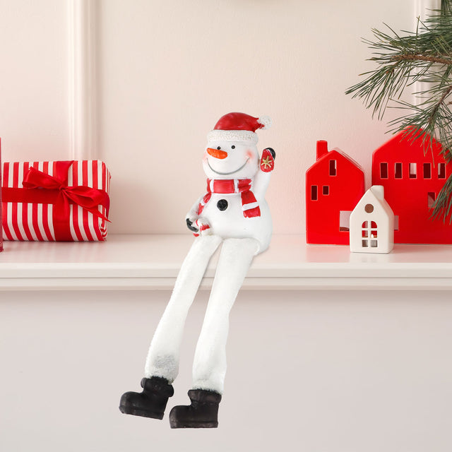 Muñeco de Nieve, Piernas Colgantes, Cerámica, Color Blanco