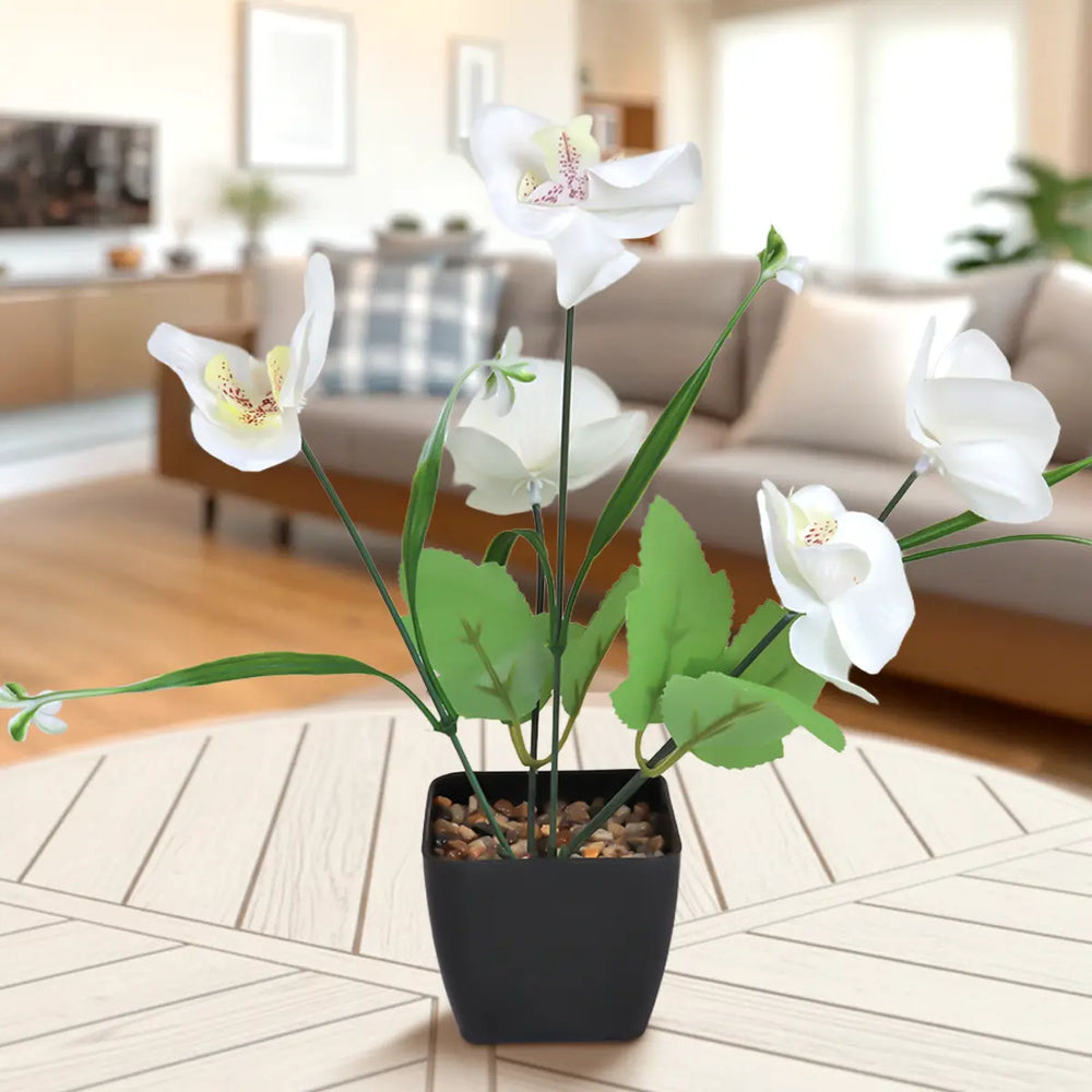 Añade un toque de sofisticación y frescura a cualquier espacio con nuestra maceta con orquídea artificial.