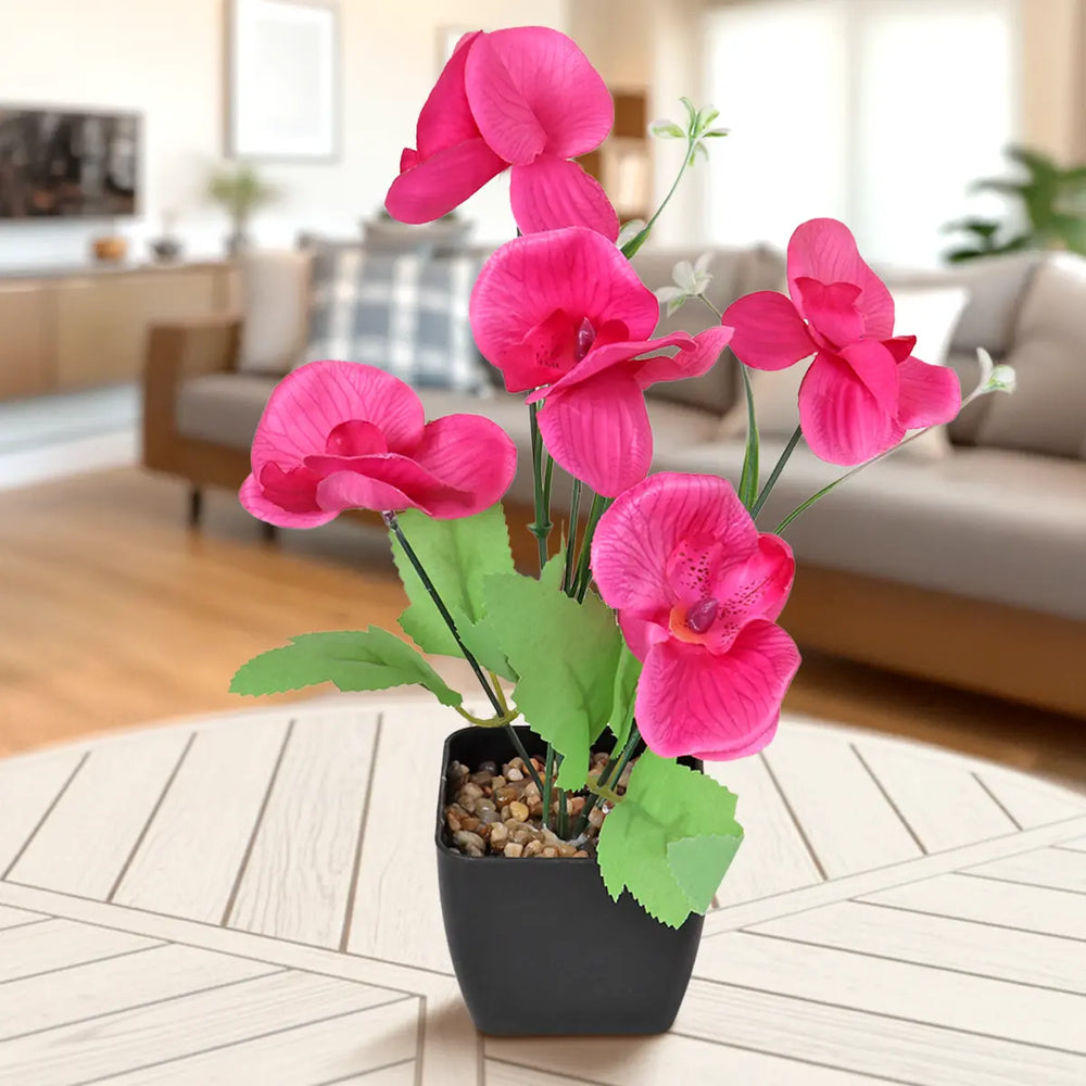 Orquídea Mariposa Artificial con Maceta, Color Fucsia